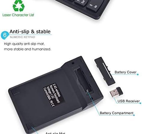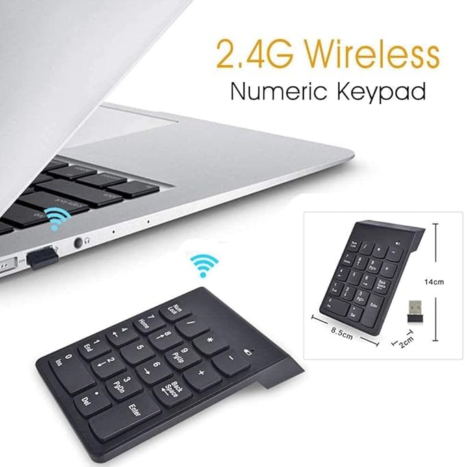 Generic - لوحه مفاتيح لاسلكي ارقام صغيره متوافقه مع لاب توب وكمبيوتر للمحاسبين ورجال الأعمال كيبورد ويرليس اسود