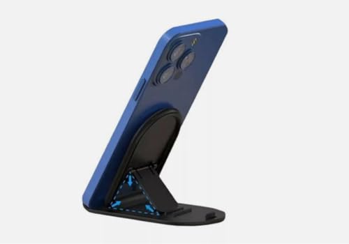 Generic - حامل موبايل صغير قابل للتعديل بأربعة مستويات لسطح المكتب وقابل للطي بشكل مبتكر، مشبك بطاقة دعم محمو (ازرق)