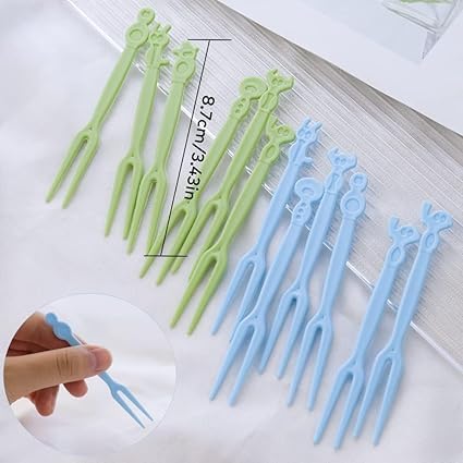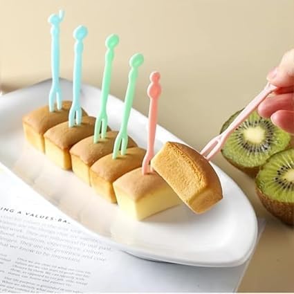 - ١) الحجم: شوك فاكهة مصغرة بطول ٨.٥ سم، مثالية للمقبلات والفواكه والحلويات