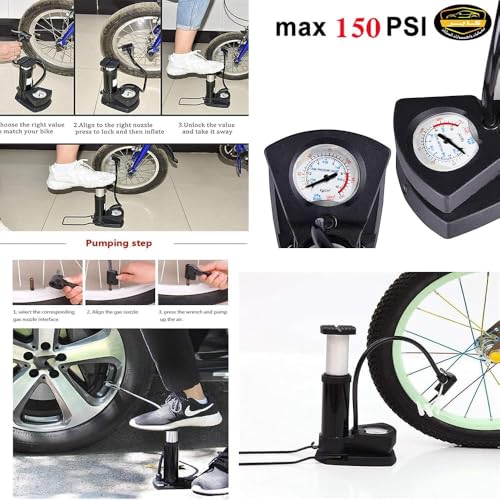 - سريع وسهل: حركة مضخة القدم سهلة وسريعة. يمكنك رفع الإطارات الخاصة بك في بضع ثوان دون التعرق. يوفر الطاقة للأشياء المهمة.