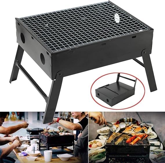 Generic - شواية فحم صغيرة محمولة، شواية خفيفة قابلة للطي، مناسبة للحدائق والتخييم والعطلات والسفر (36 سم × 29 سم × 6.8 سم)
