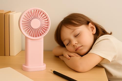 Generic - مروحة محمولة صغيرة - ببطارية قابلة للشحن 4.2V - تصميم عملي بحجم مدمج مع منفذ USB للشحن – مروحة قوية وخفيفة الوزن – موديل YM88208 (بينك)