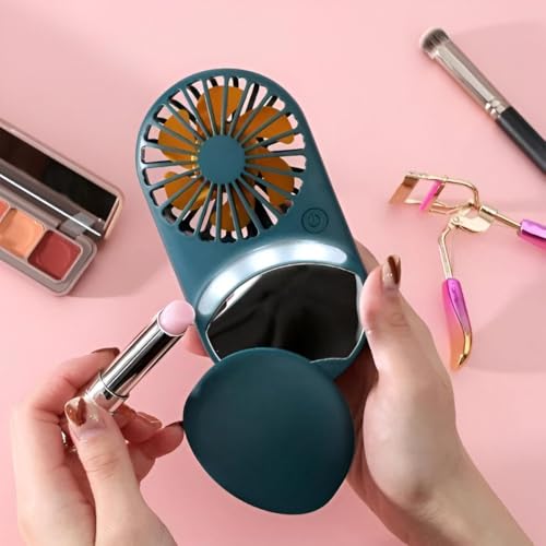 Generic - مروحة صغيرة محمولة - مروحة شخصية صغيرة قابلة للطي مع بطارية قابلة لاعادة الشحن وسهلة الحمل للاستخدام الداخلي والخارجي بلمسة نهائية عاكسة باللون الزهري (ازرق)