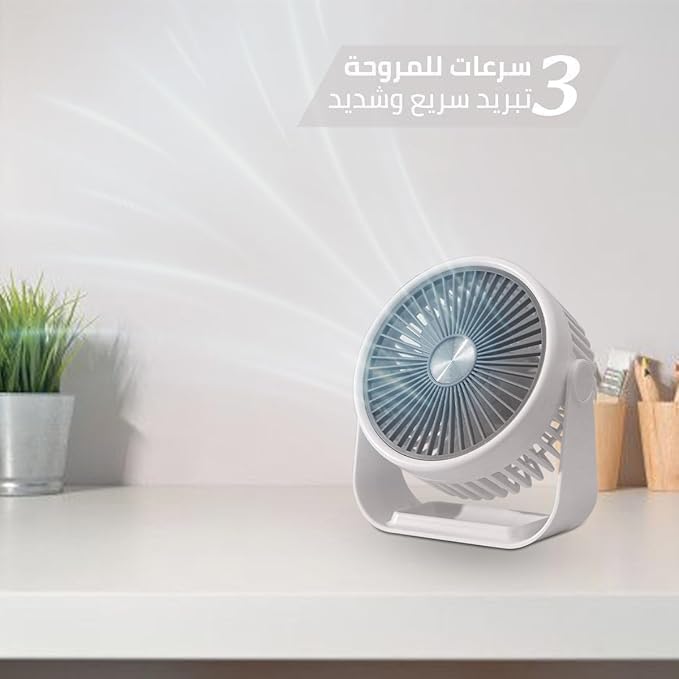 - أداء قوي: على الرغم من صغر حجمها، توفر المروحة تبريدًا قويًا بمحرك 5 واط، مما يضمن لك البقاء باردًا حتى في الأيام الأكثر حرارة.