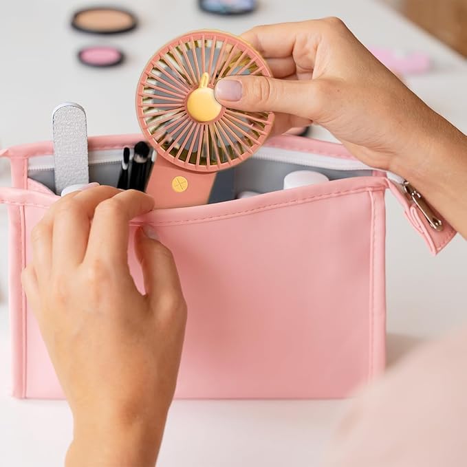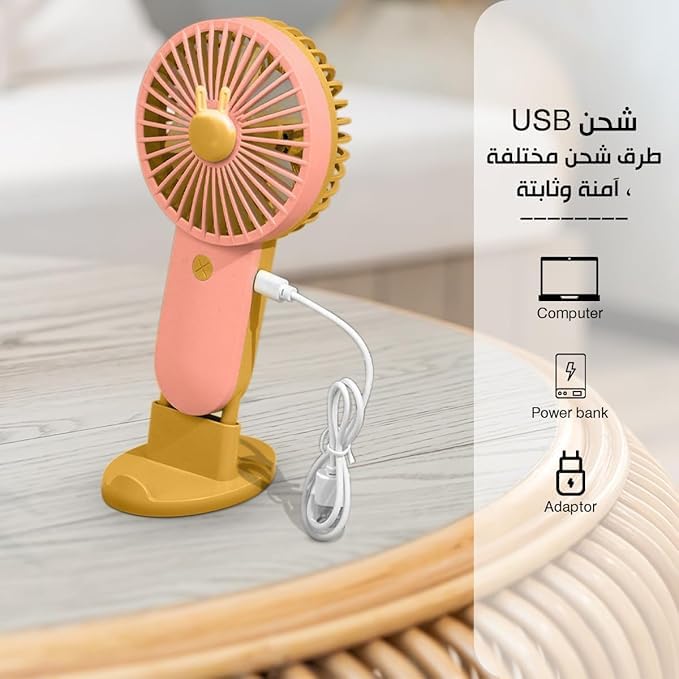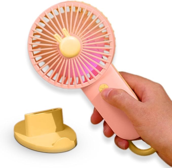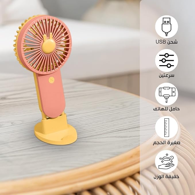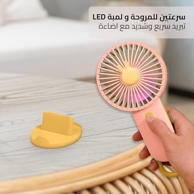 Generic - مروحة يد صغيرة محمولة بمنفذ USB، مروحة محمولة عالية السرعة بمنفذ USB، مروحة صغيرة محمولة بمنفذ USB لسطح المكتب مع حامل للموبايل وإضاءة ليد بسرعتان، تصميم صغير الحجم للسفر والمنزل، SQ 2200، وردي