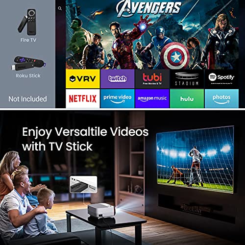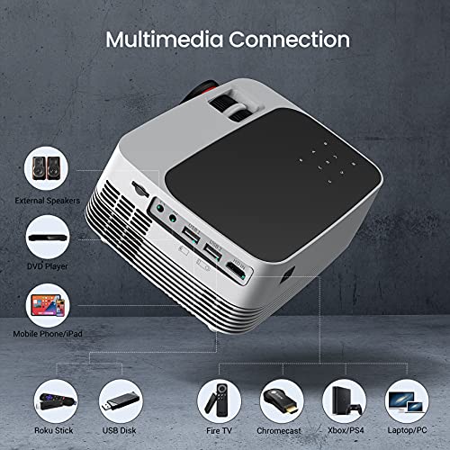 VT Tele CA - جهاز عرض صغير 1080P HD يدعم واي فاي فيلم 6500 لوكس مع شاشة موبايل متزامنة فيديو متوافق تي في ستيك PS4 - 5 HDMI USB AV SD لابتوب 2021 مطور 1920 × 1080 أبيض