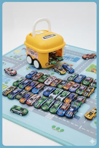 - مجموعة كاملة: تتضمن صندوق تخزين شاحنة إطفاء حمراء بمقبض و30 سيارة سباق متنوعة بألوان وتصميمات مختلفة حيوية.