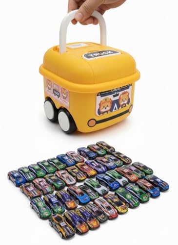 Generic - مجموعة سيارات سباق للأطفال، 30 قطعة من المركبات المصبوبة مع حقيبة حمل شاحنة صفراء، لعبة سيارة 21 × 13 × 8 سم، سيارات سباق، صندوق تخزين