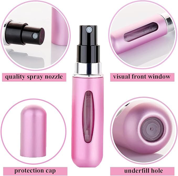 - قابلة لإعادة التعبئة: زجاجة عطر السفر الخاصة بنا تشتمل على صمام سفلي مما يجعل من السهل إعادة ملئها، أنت فقط بحاجة إلى إدخال فوهة العطر في الصمام السفلي، ثم اضغط على زجاجة الرش الصغيرة لأعلى وأسفل بشكل متكرر لملء العطر.