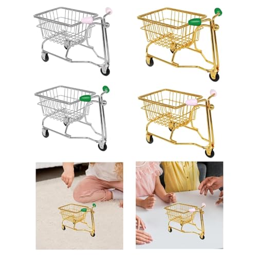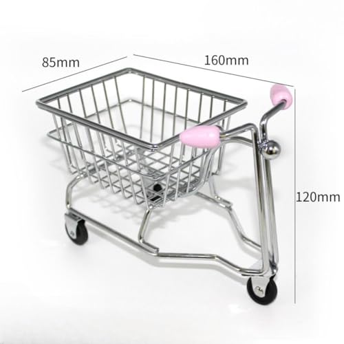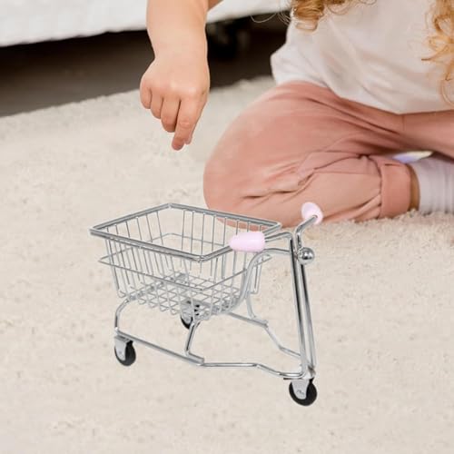 Generic - نموذج عرض لعربة تسوق صغيرة، سلة تخزين معدن بعجلات مع مقابض مناسبة كهدية ديكور للبنات
