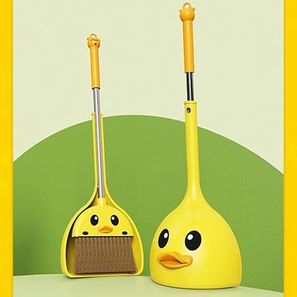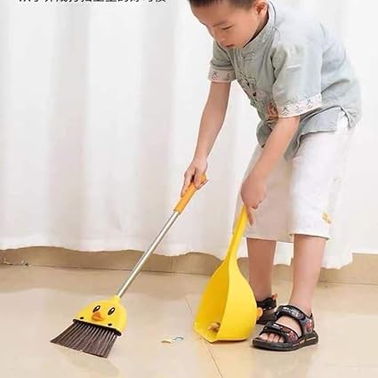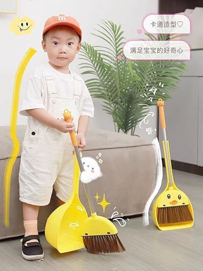 Generic - مكنسة بشعيرات مصقولة مع جاروف بمقبض من الصلب عالي الجودة لتنظيف الغبار في الأرض