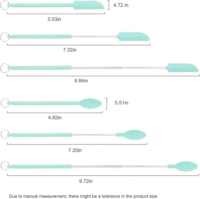 Generic - معالق سيليكون سباتولا صغيرة تلسكوبية ومقشطة مقاومة للحرارة بمقابض قابلة لتعديل الحجم للبرطمانات وزجاجات المطبخ وعلب مستحضرات التجميل
