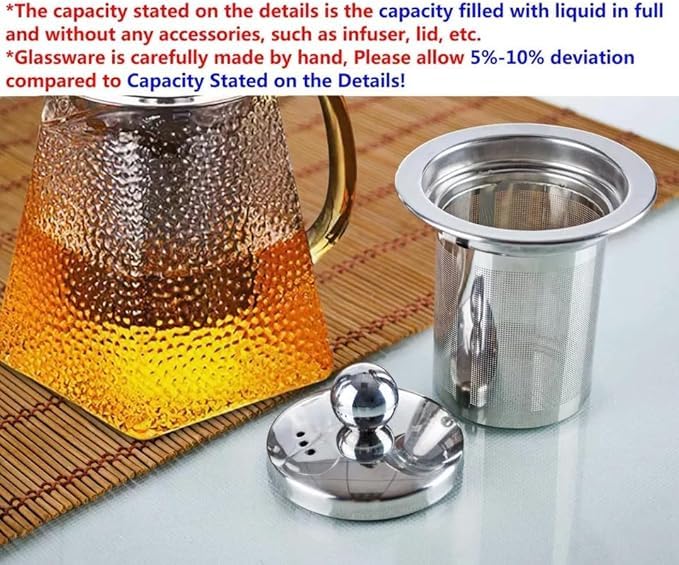 - 🍀【غلاية شاي من الزجاج السميك والمتين】: غلاية شاي شفافة للغاية. الهدية المثالية لمحبي الشاي لإعداد الشاي العشبي والشاي الغامق والشاي المعطر وشاي الفاكهة والليمون والقهوة وغيرها من أنواع الشاي والمشروبات المختلفة. أقصى سعة لغلاية الشاي هي 950 مل، يمكنك صنع 4 إلى 6 أكواب من الشاي. مناسبة للعائلة لتناول الشاي معًا.