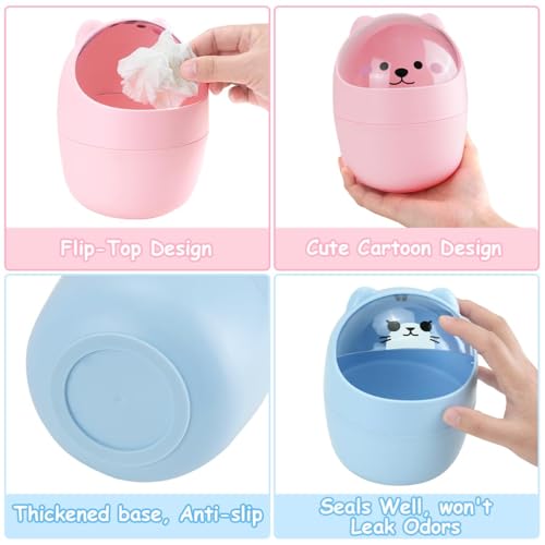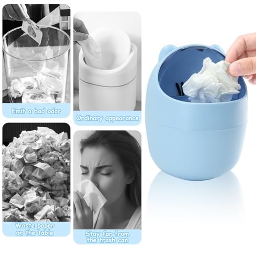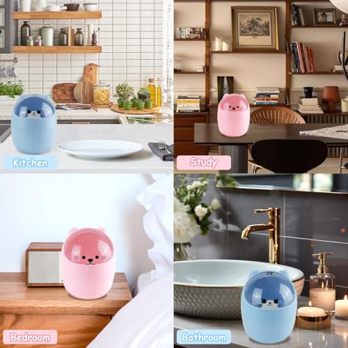 - 【سلة مهملات صغيرة لطيفة】 سلة مهملات صغيرة لسطح المكتب بتصميم حيوان كرتوني لطيف، يمكنك بسهولة إزالة الغطاء لوضع كيس قمامة. يمكن أن تساعدك سلة المهملات المحمولة هذه في تخزين الورق المهدر وعناصر المكياج وتفل القهوة والقشور، وهي رائعة لوضعها على طاولة الحمام وطاولة المطبخ والسيارات والعديد من الأماكن الأخرى على سطح المكتب.