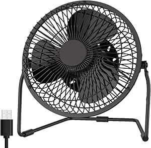 Generic - مروحة مكتب صغيرة بمنفذ USB، مروحة طاولة معدنية شخصية محمولة، اسود، حجم صغير، تعمل بمنفذ USB، تبريد للمكتب والمنزل