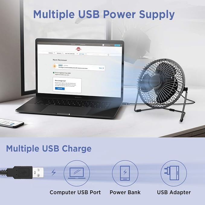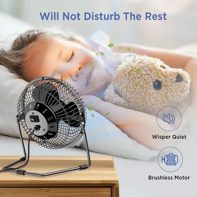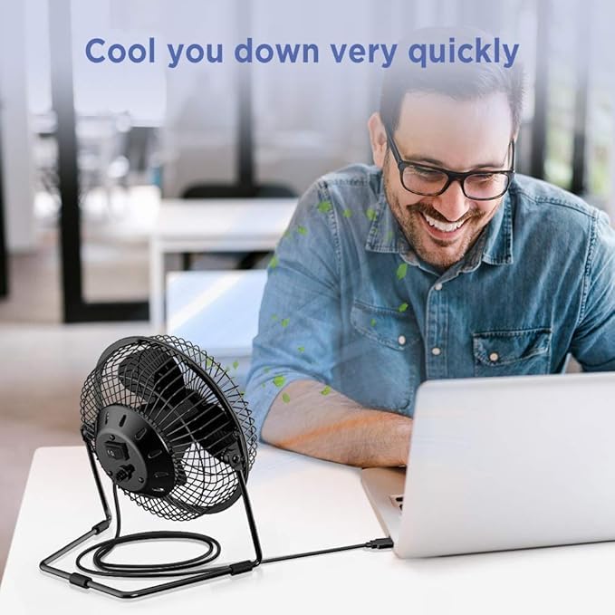 - تصميم محمول: مروحة مكتب صغيرة مدمجة بإطار معدني قوي واتصال طاقة USB مريح، مثالية للتبريد الشخصي في المنزل أو أماكن العمل المكتبية