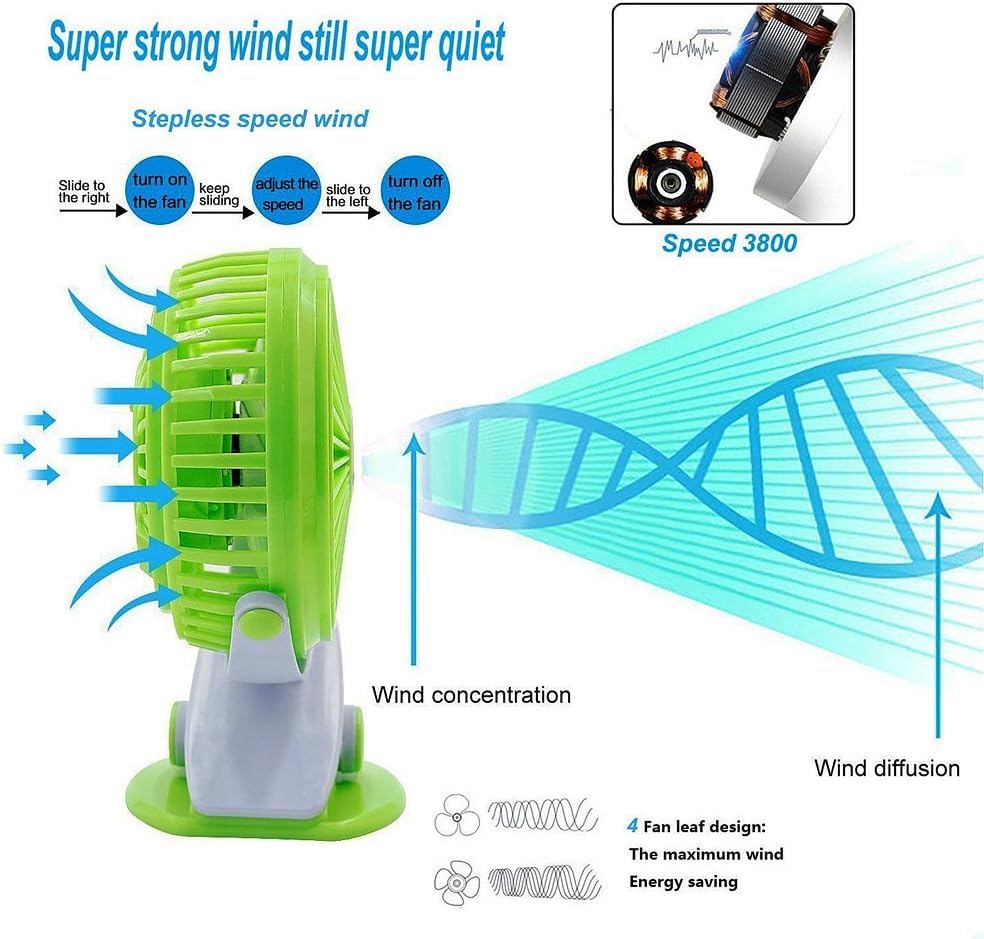 Generic - مروحة مكتبية USB صغيرة قابلة لإعادة الشحن بلاستيكية مشبك سرير بجانب السرير سطح مكتب محمولة لغرفة النوم وغرفة مراوح تبريد منزلية 3 بينك متعدد الالوان
