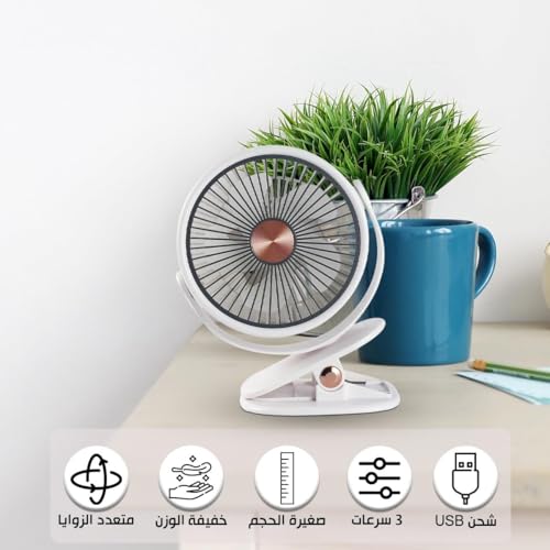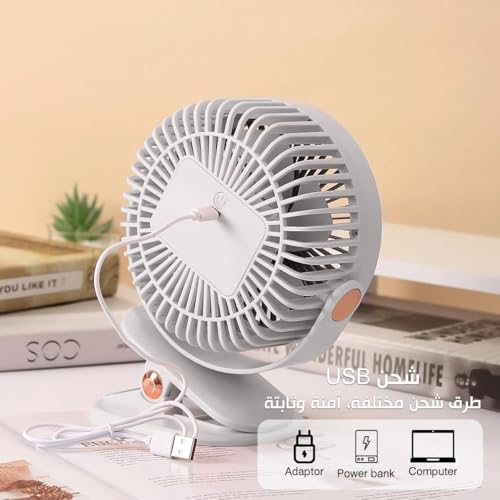 Generic - مروحة USB صغيرة، مروحة محمولة باليد ومكتبة، 3 سرعات طاقة 5 واط، تعمل بمنفذ USB، مع حامل للسفر والمنزل والمكتب، ZB125 (ابيض)