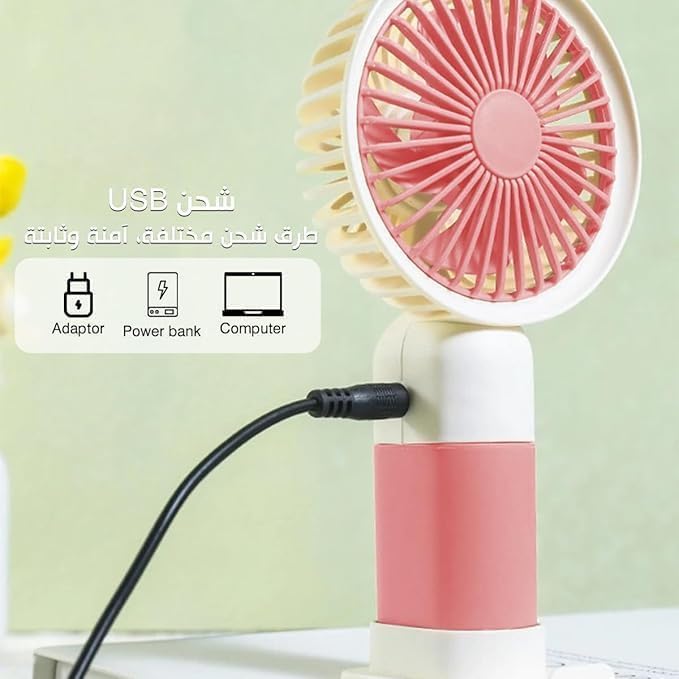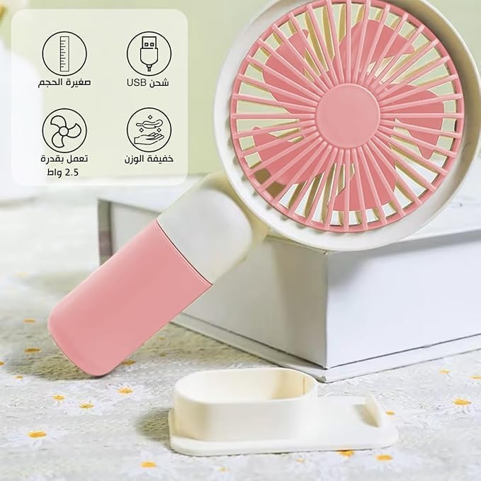 Generic - مروحة يد بمنفذ USB صغيرة محمولة بسرعة واحدة، للاستخدام على المكتب وفي اليد وقابلة لإعادة الشحن، مروحة تبريد شخصية مع حامل، صغيرة وخفيفة الوزن للمكتب أو المنزل أو أثناء السفر، 1.5 وات (وردي)