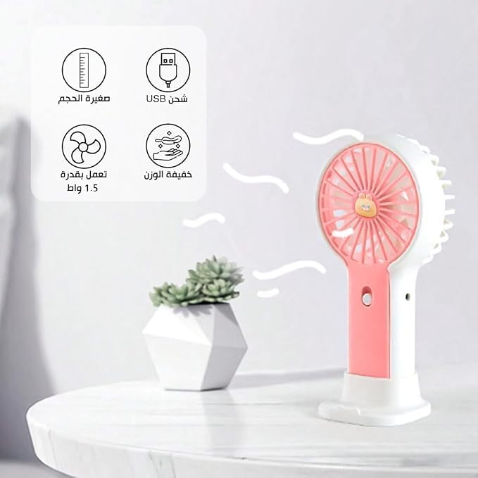 Generic - مروحة يد صغيرة محمولة بسرعة واحدة لسطح المكتب قابلة لإعادة الشحن خفيفة الوزن بمنفذ USB للمكتب والمنزل والسفر، مروحة طاولة صغيرة بقدرة 1.5W، DD 5627 (وردي)