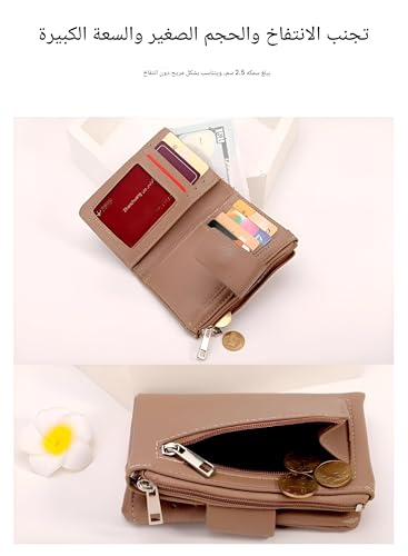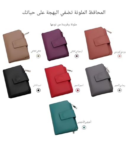 Generic - محفظة صغيرة - تصميم صغير من الجلد الصناعي للنساء مع لمسة نهائية انيقة، فتحات متعددة للبطاقات، نافذة لبطاقة الهوية، اغلاق بزر كبس آمن، جيب بسحاب للعملات المعدنية، مظهر نحيف للجيوب او شنطة اليد (الخيار