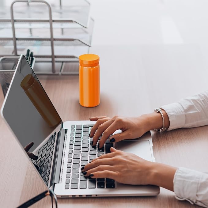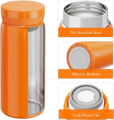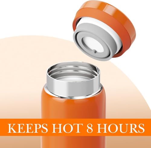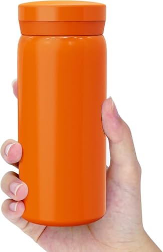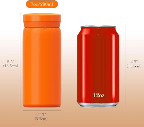 fashion mania - زجاجة مياه صغيرة من الفولاذ المقاوم للصدأ معزولة بتفريغ الهواء للمشروبات الساخنة والباردة مريحة ومحمولة للسفر والتمرين 200 ملليلتر (برتقالي)