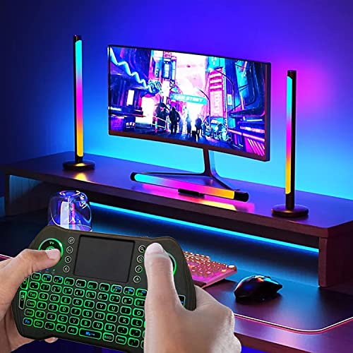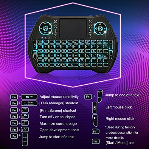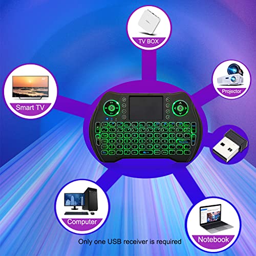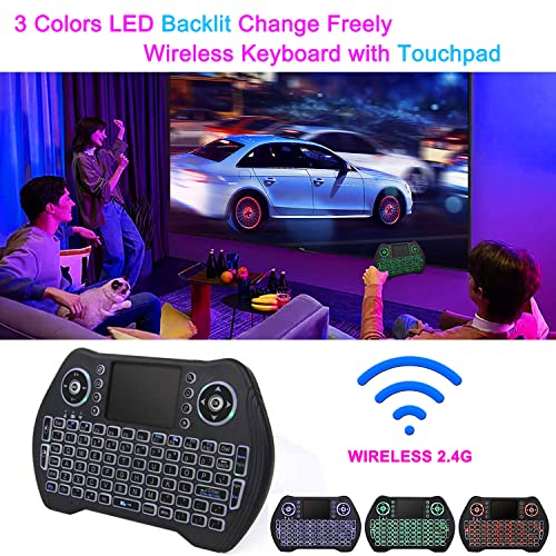 EASYTONE - لوحة مفاتيح لاسلكية صغيرة محمولة باليد بإضاءة خلفية مع لوحة لمس وماوس ومفاتيح وسائط متعددة 2.4G، لأجهزة اندرويد تي في بوكس وHTPC وبلاي ستيشن 3 و4 والكمبيوتر بنظام ويندوز والموبايلات الذكية والتابلت