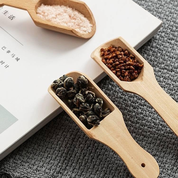 - طقم مكون من 5 ملاعق ميني خشبية يتيح لك توزيع كل ملعقة داخل برطمان مختلف لسهولة الوصول إلى التوابل أثناء الطهي.