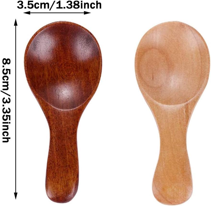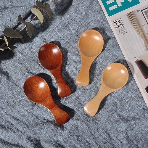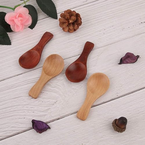 Generic - ملعقة خشبية صغيرة 8 سم مصنوعة يدويا بشكل طبيعي للقهوة والسكر والتوابل - ملعقة تقديم ريفية صديقة للبيئة لتزيين المطبخ والحلوى وهدية باريستا