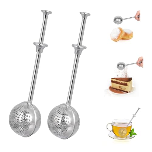 Minicoco - طقم مصفاة شاي كروية بمقبض طويل مكون من قطعتين، بتصميم مقاوم للصدا، منخل دقيق سهل التنظيف من الفولاذ مقاوم للصدأ، مناسبة للمنزل والمكتب