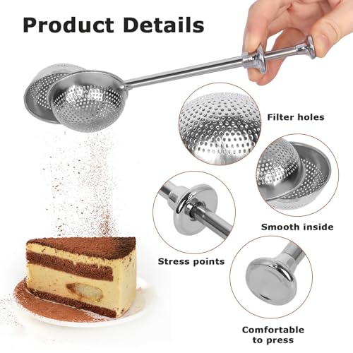 - 【تستخدم على نطاق واسع】مصفاة تحضير الشاي الخاصة بنا ليست مناسبة فقط لترشيح أوراق الشاي وتخمير الشاي العطري؛ بل يمكن استخدامها أيضًا للدقيق أو السكر أو الملح أو الفلفل أو غيرها من مكونات المطبخ الجافة. بالإضافة إلى ذلك، يمكن استخدامها أيضًا لرش الكب كيك أو الخبز أو الآيس كريم أو البودينج أو رش السكر أو مسحوق الكاكاو لإضافة نكهة إلى أطباقك الشهية.