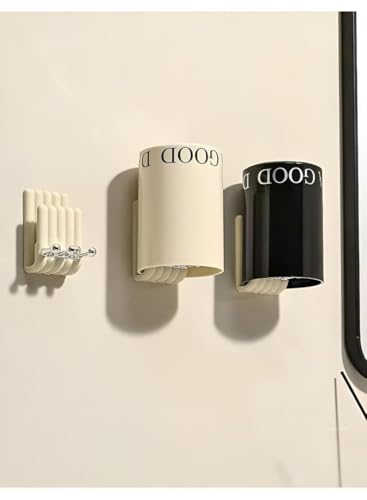 generic - حامل فرشاة اسنان اكريليك بتصميم بسيط مع كوب منظم للحمام بلون ابيض واسود لتخزين فرش الاسنان وكوب الشطف للاستخدام اليومي في الحمام