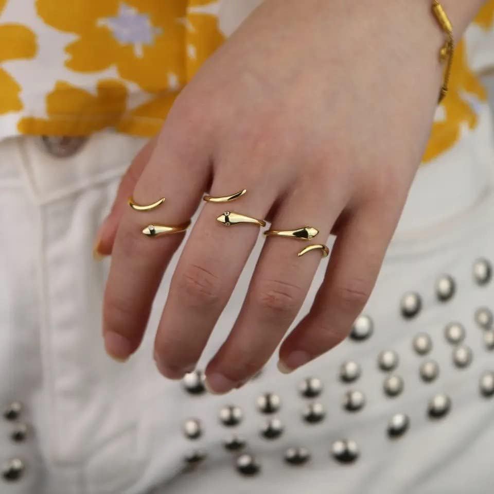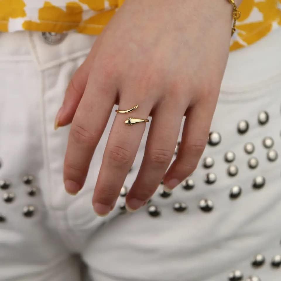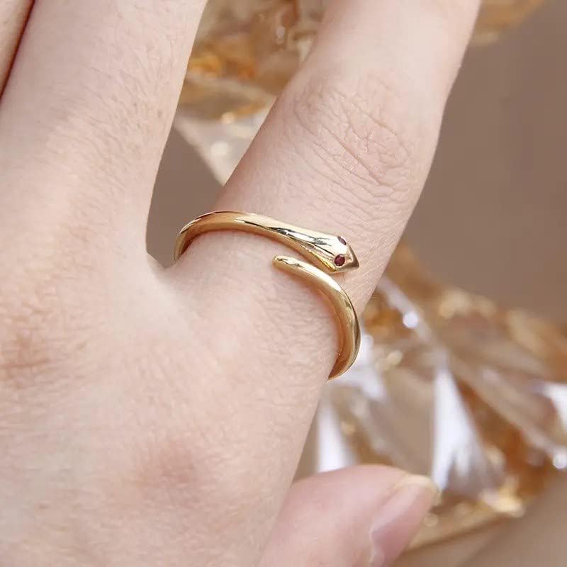 Generic - خاتم اصبع مفتوح بتصميم ثعبان بلون ذهبي لطيف قابل لتغيير المقاس للنساء , معدن, بدون أحجار كريمة
