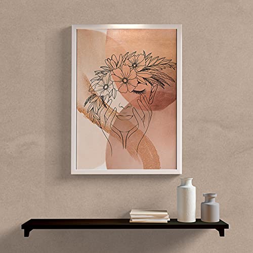 Generic - ديكور المنزل - اطارات الديكور - الالوان - اطار للديكور مع لوحة بسيطة بتصميم مراة مع زهور (اطار ابيض، 40)