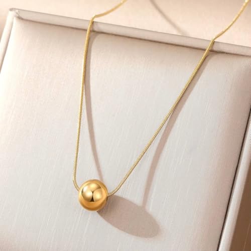 Generic - قلادة بدلاية على شكل كرة ذهبية بسيطة للنساء بتصميم بسيط من الخرز الدائري الانيق للارتداء اليومي، سلسلة مجوهرات هدية