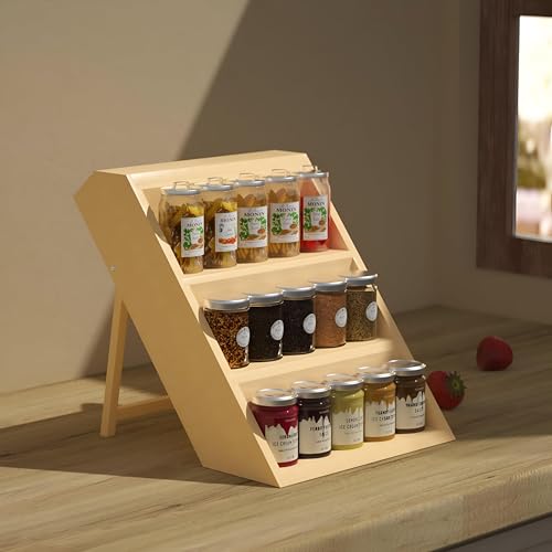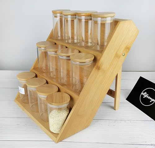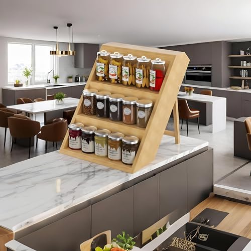 Generic - رف توابل بسيط - منظم من 3 طبقات من الخيزران والخشب لتخزين المطبخ بدون فوضى