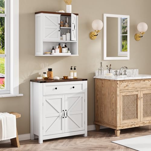 Mino Kesper - دولاب أرضي للحمام بتصميم ريفي، دولاب تخزين/منظمات حمام قائم بذاته بأدراج، دولاب تخزين فوط حمام قائم بذاته ببابين من مينو كيسبر