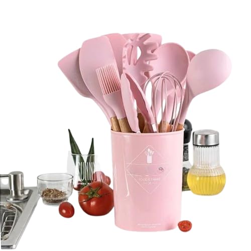Generic - طقم توزيع سيليكون حراري 12 قطعة لون مينت جرين بمقابض خشبية فاخرة - مجموعة أدوات مطبخ متكاملة مع قاعدة تنظيم لحماية الأواني من الخدش mi