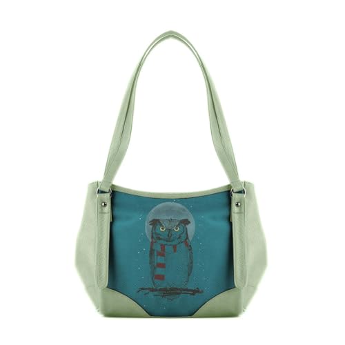 Generic - شنطة يد كبيرة توت قماشية بطبعة بومة، شنطة يد مزخرفة، أخضر مينت