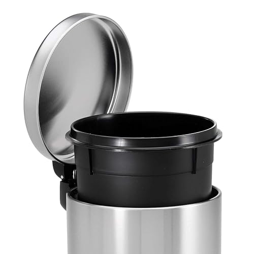 - سلة داخلية قابلة للإزالة: بطانة داخلية قابلة للإزالة مع مقبض حمل من الستانلس ستيل يمكن رفعها لسهولة التخلص من القمامة دون استخدام أكياس بلاستيكية وسهولة تنظيف سلة القمامة الصغيرة بالكامل.