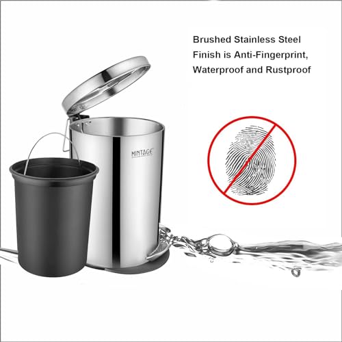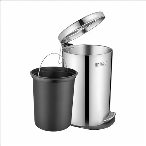 Mintage - سلة مهملات ورقية خشبية عتيقة من الستانلس ستيل (راجا) مع دلو داخلي ناعم (رقم 7) | سلة مهملات للمنزل | المطبخ | الحمام | المكتب وغرفة الغسيل مع دلو بلاستيكي