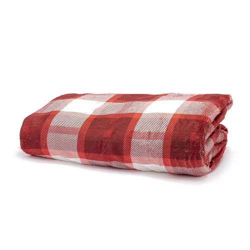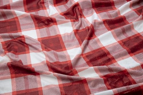 - بطانية مقاس 1.3 × 1.8 متر بتصميم نقشة مربعات، لون أحمر