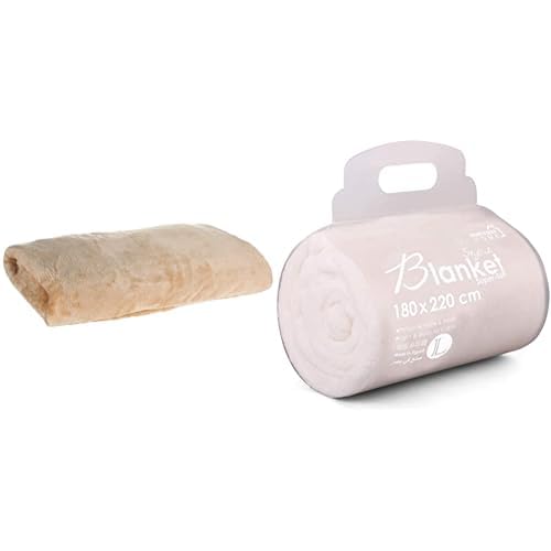 Mintra - بطانية مايكروفايبر من مينترا بمقاس 180 × 220 سم ولون بيج + بطانية مايكروفايبر من مينترا فائقة النعومة من بوليستر بنسبة 100% مقاس 180 × 220 سم - كريمي