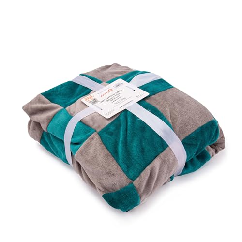 Mintra - بطانية من المايكروفايبر من مينترا، بلون أخضر × بني موكا × بني موكا، مقاس مزدوج 2.2×1.8 م