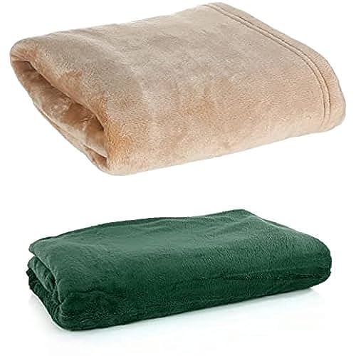 Mintra - بطانية مايكروفايبر فائقة النعومة مصنوعة من البوليستر بنسبة 100% (1.80 متر×2.20 متر) بلون بيج + بطانية مايكروفايبر فائقة النعومة مصنوعة من البوليستر بنسبة 100% (1.30 متر×1.80 متر) بلون اخضر من مينترا