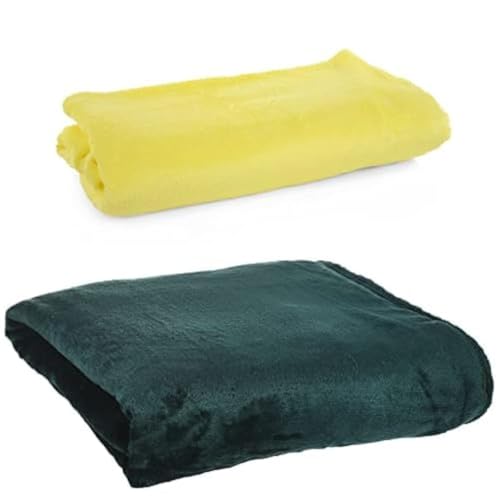 Mintra - طقم بطانيات من مينترا مصنوعة من الالياف الدقيقة (المايكروفايبر) والبوليستر بنسبة 100%، فائقة النعومة، (1.8 متر× 2.2 متر) - قطعتين، اصفر، واخضر