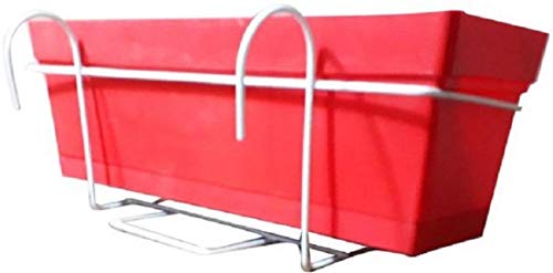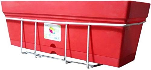 Mintra - وعاء اصيص حوض زرع من مينترا - مع حامل حديد للبلكونات - 50x17 سم (أحمر)