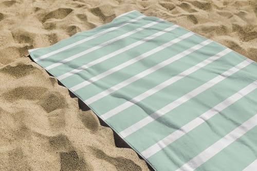 - فوطة تيري مطبوعة بخطوط من مينترا، بلون أخضر مينت، مقاس 70 سم × 1.4 م