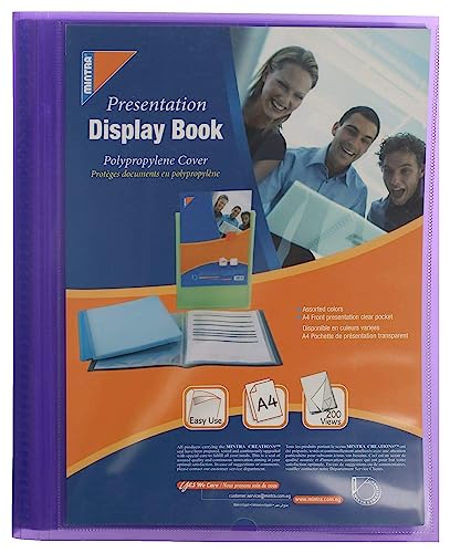Mintra - دفتر عرض شفاف بحجم A4 من مينترا مع جيب عرض - السعة تحمل 80 ورقة من الورق / 160 منظر - حامل للمستندات والورق للحماية - ارجواني