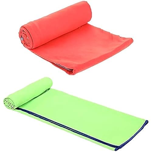 Mintra - فوطة سباحة فائقة النعومة من المايكروفايبر بلون وردي مقاس متوسط 65×90 سم مع فوطة سباحة فائقة النعومة من المايكروفايبر مقاس كبير جدًا 110×175 سم بلون اسيد جرين من مينترا